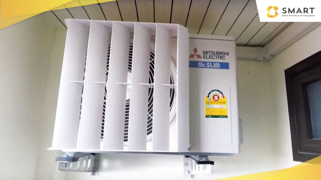 - กรณีที่อยู่เป็นคอนโด ติดตั้งคอมเพรสเซอร์บริเวณระเบียง