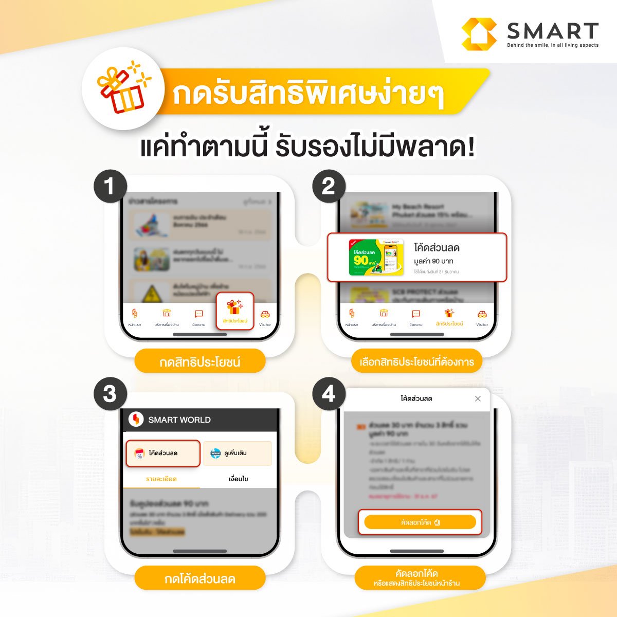 รวมสิทธิพิเศษหลากหลายรูปแบบ ทั้งส่วนลด ของแถม และข้อเสนออีกมากมาย อัพเดทใหม่ตลอดทุกเดือน! ให้ลูกบ้านสมาร์ทเลือกได้ตามใจต้องการ