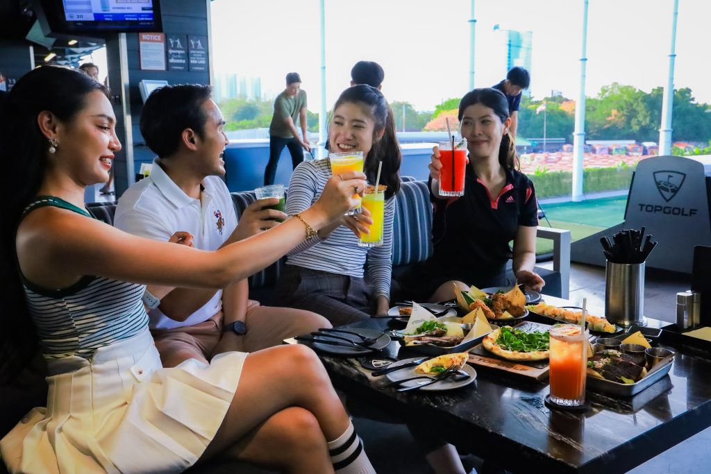 ใครสายกิน สายชิล หรือสายแฮงค์เอาท์ ยิ่งต้องมาลอง! Topgolf เปิดบริการถึง 5 ทุ่มในวันอาทิตย์ถึง พฤหัส และเปิดถึงเที่ยงคืนสำหรับวันศุกร์-เสาร์ ที่นี่มีร้านอาหาร และเครื่องดื่มให้เลือกถึง 5 ร้าน 5 สไตล์ ไม่ว่าจะเป็น BUSTED, Patio, Topgolf Sports Bar, Pink Giraffe Rooftop Bar และ DEVIL’S LOUNGE ลบภาพร้านอาหารที่สนามกอล์ฟจะไม่อร่อยไปได้เลย เพราะที่นี่เรื่องกินเรื่องใหญ่! มีเชฟชื่อดังมาเสิร์ฟให้ถึงที่โต๊ะ ไม่ว่าจะเป็นเมนู Wood Smoked Pork Spareribs ไปจนถึงหมูปิ้งสูตรลับเฉพาะของ Topgolf Megacity จะนั่งทางที่นั่งในร่มที่นั่งกลางแจ้งสนามพัตต์ หรือบริเวณฟู้ดบัสเพื่อเปลี่ยนบรรยากาศก็ได้ฟิลไปอีกแบบ